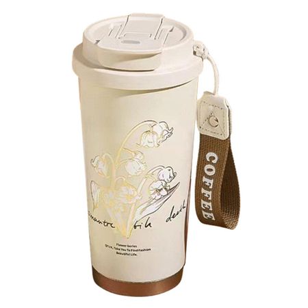 500 мл Kawaii Flower Coffee Tumbler с соломинкой Термокружка для кофе в машину из нержавеющей стали Термокружка для воды для женщин и мужчин 500ml бежевый