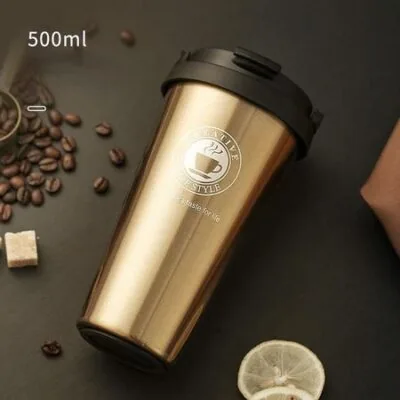 500 мл Нержавеющая сталь 304 Кружка-термос для кофе с ручкой Герметичная автомобильная термос для путешествий Изолированный стакан для бутылок 500ml золотой