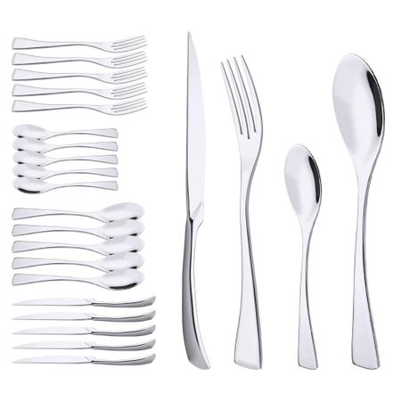 6 компл./24 шт. розовая посуда, набор столовых приборов, кухонная посуда из нержавеющей стали 18/10, набор столовых приборов, вилка, нож, ложка, сверхмощный набор столовых приборов серебряный