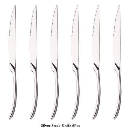 6 шт. 18/10, золотой нож для стейка из нержавеющей стали, острые столовые ножи, набор ресторанных столовых приборов, обеденный нож, зеркальные ножи для стейка, набор столовой посуды серебряный