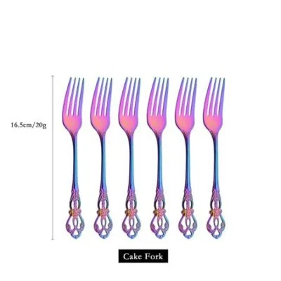 6 шт./24 шт., набор столовых приборов Rainbow Western, набор столовых приборов из нержавеющей стали, нож, вилка, кофейная ложка, набор посуды с роскошной стойкой для хранения 6pcs-dessert fork