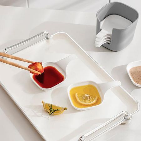 6 шт./компл. блюдо для приправ со стойкой для хранения, пищевые тарелки для соуса, легко чистящиеся, универсальное блюдо для приправ для домашнего ресторана, пикника 1 Set