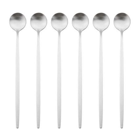 6 шт./компл., черные столовые приборы с длинной ручкой, матовые ложки из нержавеющей стали, полированные ложки для перемешивания, напитки, мороженое, десерт, чайные ложки, посуда серебряный