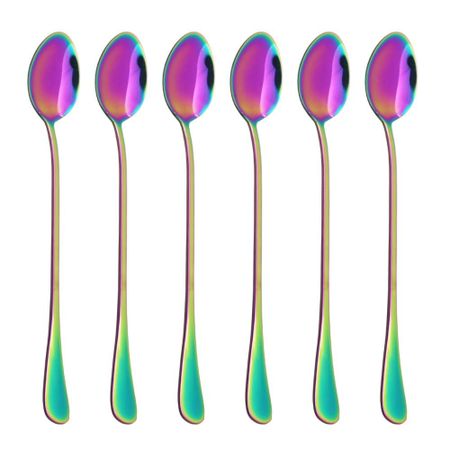 6 шт., красочный набор столовых приборов, ложка из нержавеющей стали с длинной ручкой, столовая посуда, десертная ложка для мороженого, кофе, ложка для перемешивания, столовое серебро серебряный