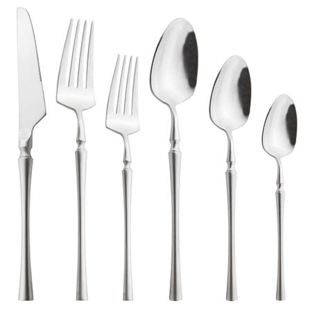 6 шт., набор столовых приборов из белого золота, набор столовой посуды в стиле вестерн, столовая посуда из нержавеющей стали 304, десертная вилка, ножи, ложка, набор кухонных столовых приборов серебряный