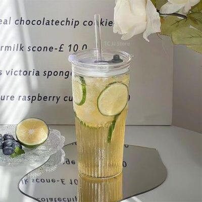600 мл полосатый стеклянный стакан с крышкой и трубочкой прозрачные холодные питьевые стаканы кружка для кофе со льдом сока молока чая воды чашки посуда для напитков 600ML