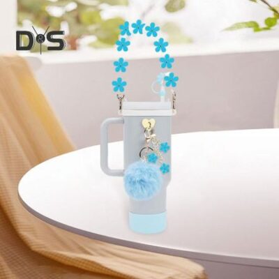 7 шт./набор цепочек для чашек, аксессуары для украшения чашек, мультяшные цветы, безопасная петля, пряжка, соломенная крышка, подставка для бутылки с водой, украшение, набор синий