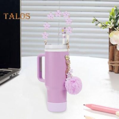 7 шт./набор цепочек для чашек, аксессуары для украшения чашек, мультяшные цветы, безопасная петля, пряжка, соломенная крышка, подставка для бутылки с водой, украшение, набор жёлтый