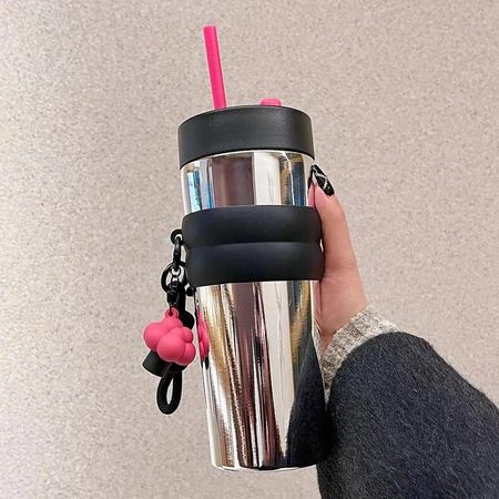 710 мл большая емкость автомобильный термос кружка из нержавеющей стали с выдвижной трубочкой герметичная бутылка для холодных напитков кофе чай 710ml серебряный