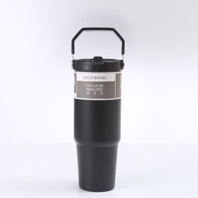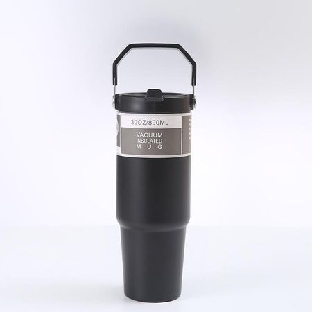 900 мл портативная автомобильная чашка из нержавеющей стали с соломой, дорожная спортивная бутылка для воды с ручкой, термос для кофе 900ml чёрный
