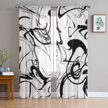 Абстрактное искусство лица, оконная обработка, тюль, современные прозрачные шторы для кухни, гостиной, спальни, шторы, украшение W135 x H114cm