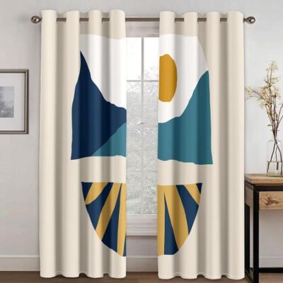 Абстрактные геометрические художественные шторы с принтом листьев для спальни, гостиной, жалюзи от пола до потолка, жалюзи на окна, люверсы, верхние шторы (W50H130cm)-2pcsGrommet Top