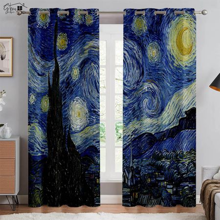 Абстрактные шторы с масляной живописью Горы, Леса, Корабли и Реки Искусство Спальня Гостиная Кабинет 3D-печать Шторы 2 штуки W50xH130(CM)x2PCSRod pocket