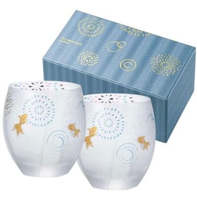 ADERIA S6268 Premium Nippon Taste, фейерверк Goldfish, 11,6 жидких унций (345 мл), Рок-стакан, набор из пары, сделано в Японии, поставляется в косметической коробке, виски, стекло