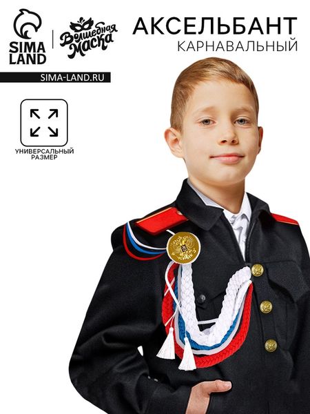 Яркий и стильный аксельбант — незаменимый аксессуар для создания образа солдата на параде. Этот элемент костюма поможет вам погрузиться в атмосферу праздника и почувствовать себя настоящим защитником Родины.Особенности аксельбанта Аксессуар выполнен в классических цветах российского триколора, который придаёт ему торжественный и патриотичный вид. Аксельбант украшен металлическим гербом — символом воинской доблести и чести. Яркие кисточки придают изделию праздничный вид.Аксельбант легко фиксируется на форме с помощью крепления под погоном и пуговицей, обеспечивая надёжную фиксацию.Изготовлен из приятного на ощупь и долговечного в использовании полиэстера. Аксессуар отлично подойдёт для тематических вечеринок, костюмированных представлений, военных реконструкций и других мероприятий, где требуется создать образ солдата. Аксельбант станет ярким акцентом вашего образа и подчеркнет вашу индивидуальность.