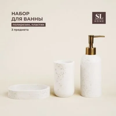 Откройте для себя сочетание стиля и функциональности с элегантными аксессуарами для ванной от SL Home. Этот тщательно подобранный набор из трёх предметов — дозатор, мыльница и стакан — станет настоящим украшением вашей ванной комнаты и поможет создать атмосферу уюта и гармонии.Каждый элемент набора выполнен в чистом белом цвете и изготовлен из прочного полирезина, что обеспечивает долговечность и лёгкость в уходе. Однотонный дизайн без рисунков позволяет без труда сочетать эти аксессуары с любым интерьером, придавая ему изысканный вид.Эстетика и простота: лаконичное оформление аксессуаров легко вписывается в современные интерьеры, создавая приятную обстановку.Комфорт в использовании: дозатор удобен для распределения жидкого мыла, мыльница надёжно удерживает мыло, а стакан идеально подходит для зубных щёток.Износостойкость: полирезин обеспечивает длительный срок службы, что позволяет вам наслаждаться качеством без необходимости частой замены.Универсальность: идеально подходит для любой ванной комнаты, вне зависимости от её стиля и оформления.Простота ухода: гладкая поверхность легко очищается, что избавляет вас от лишних забот и поддерживает порядок.Выбор этого набора аксессуаров — это не просто практичность, но и шаг к созданию продуманного пространства. Дайте себе возможность наслаждаться утончённым стилем и комфортом в каждом моменте вашего повседневного бытия.
