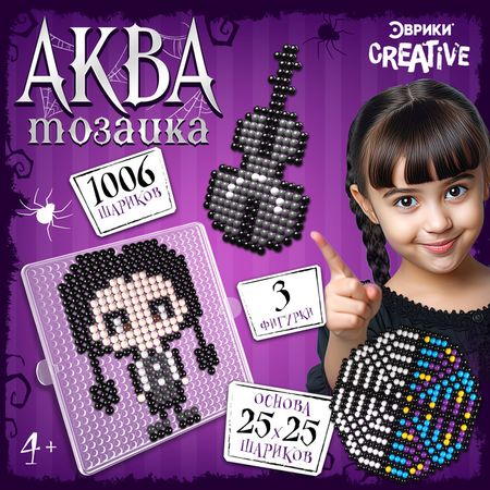 С аквамозаикой от торговой марки «Эврики» ребёнок соберёт объёмные фигурки из шариков-пикселей. Детали плотно скрепляются друг с другом. С поделками можно играть или носить с собой как брелоки.В пластиковом контейнере с отсеками удобно хранить бусинки.Как сделать фигуркуВыберите рисунок и поместите его под прозрачную основу.С помощью пинцета выложите цветные шарики по образцу.Наберите в бутылочку воды.Распылите воду на фигурку так, чтобы бусинки были равномерно покрыты водой.Оставьте мозаику на 30–40 минут до полного высыхания.После высыхания аккуратно снимите поделку с основы.Можете использовать получившуюся фигурку для создания оригинальных брелоков и украшений.В пластиковом контейнере с отсеками удобно хранить бусинки.Польза занятий с аквамозаикойИгра с мозаикой развивает мелкую моторику, цветовое восприятие и усидчивость, позволяет ребёнку проявить креативность в удивительном процессе изготовления фигурки.Подходит для детей от 4 лет.