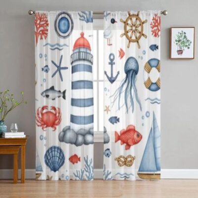 Главная » Все для дома Акварель Морская жизнь ракушки водоросли прозрачные шторы для гостиной детская спальня тюлевые шторы кухонные оконные шторы 135W x 114H(cm) Просмотров 1 Yifulin