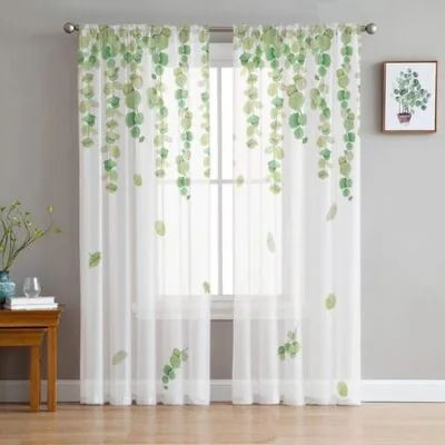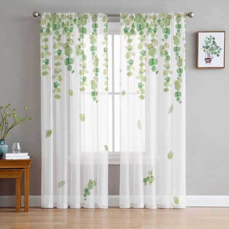 Главная » Все для дома Акварельные листья эвкалипта, зеленые прозрачные оконные шторы для гостиной, спальни, современные тюлевые шторы, тканевые шторы 135W x 114H(cm) Просмотров 9 Yifulin