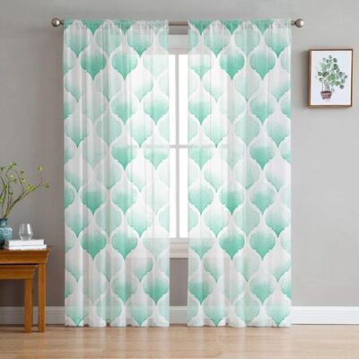 Акварельные Марокко зеленые современные художественные оконные тюлевые шторы для гостиной, кухни, современные оконные занавески из вуали 135W x 114H(cm)