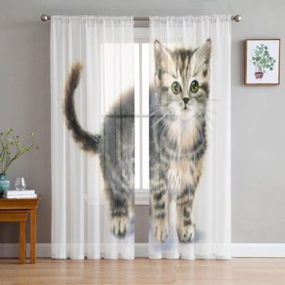 Главная » Все для дома Акварельные прозрачные шторы с забавным милым котом для гостиной, окна, прозрачная вуаль, тюлевая занавеска, шторы для спальни, домашний декор 135W x 114H(cm) Просмотров 13 Your Warm Home
