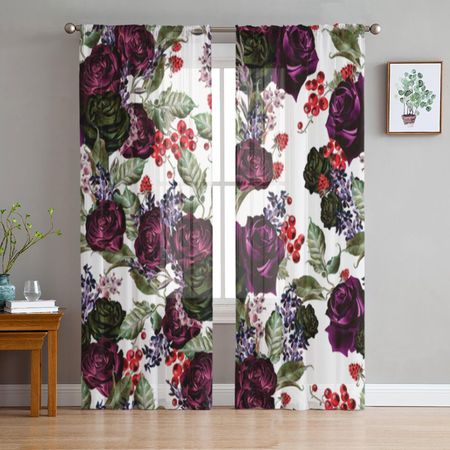 Главная » Все для дома Акварельные розы и цветы лаванды Тюль Шторы для гостиной спальни Рождественский шифон Прозрачная вуаль Кухонная занавеска 135W x 114H(cm) Просмотров 1 A Family Of Home Textiles