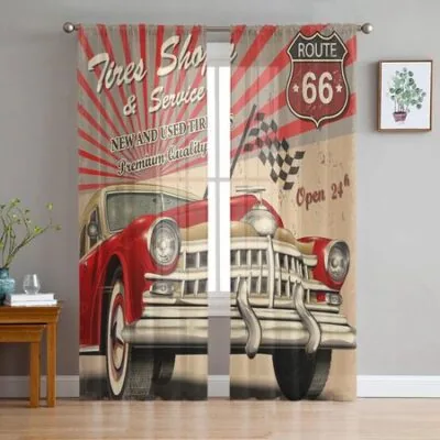 Алфавит Автомобиль Машины Винтаж Автомобиль Ретро Тюль Прозрачные Оконные Шторы для Гостиной Спальня Вуаль Шторы из Органзы Портьеры W135 x H137cm x2Rod Pocket