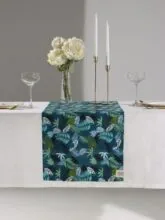 Эта синяя скатерть-дорожка с рисунком папоротника создаёт