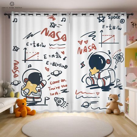 Анимированные шторы с изображением астронавта и космоса для детской комнаты, украшение окна, полузатемняющие шторы, украшение дома W50xH130(CM)x2PCSGrommet Top