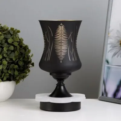 Аромалампа с подсветкой в виде листьев — это стильный элемент декора, который добавит уют и комфорт в ваш интерьер. Она сочетает в себе привлекательный дизайн и функциональность, позволяя наслаждаться успокаивающим светом и ароматами.Дизайн и материалыИзготовлена из качественного металла, стекла и пластика, лампа отличается долговечностью и надёжностью.Элегантное сочетание чёрного и золотого цветов придаёт устройству особенный шарм.Декоративный плафон с направленным вверх светом подчеркивает уникальный стиль вашего интерьера.Функциональные особенностиОснащение галогенной лампой мощностью 35 Вт позволяет оптимально освещать помещение.Цоколь типа GU10 гарантирует стабильное и безопасное использование.Питание от сети 220 В обеспечивает надёжную работу.Подсветка основания создаёт неповторимую атмосферу, а управление осуществляется с помощью выключателя на проводе.Практичность и использованиеАромалампа станет отличным выбором для любой комнаты: будь то гостиная, спальня или рабочий кабинет. Она создаст комфортную атмосферу для расслабления и отдыха.Почему стоит выбрать эту аромалампуБлагодаря современному дизайну и высокому качеству материалов, аромалампа с подсветкой в виде листьев станет не только источником света, но и стильным акцентом в вашем интерьере. Это выгодное решение для создания уютной обстановки!