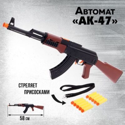 Игрушечный автомат «АК-47» — захватывающий экшен и меткость в одном комплекте!Созданный по мотивам легендарного АК-47, этот автомат подарит юному бойцу атмосферу настоящих спецопераций. Съёмный приклад и магазин делают игру более реалистичной, а мягкие пули с присосками безопасны для активных сражений.ОсобенностиСтреляет присосками – безопасные мягкие пули прилипают к гладким поверхностям.Съёмный приклад и магазин – добавьте динамики и кастомизируйте оружие.Ремень для удобства – носите автомат с собой, не выпуская из рук.Длина 58 см – внушительный размер для эффектных битв.Подарите ребёнку увлекательные военные приключения с этим мощным и стильным автоматом!