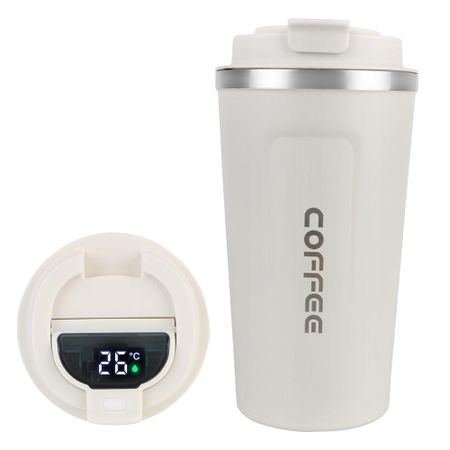 Автомобильная кружка-термос, термо-кафе, кофейная кружка, дисплей температуры 510 мл для чая, воды, кофе, герметичная термокружка для путешествий, нержавеющая сталь белый