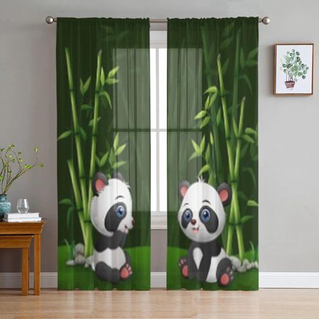 Бамбуковые прозрачные шторы с изображением маленькой панды в джунглях для спальни, гостиной, тюлевые шторы для кухни, оконные вуали 135W x 114H(cm)