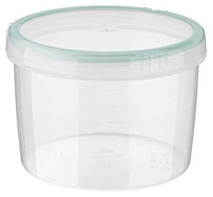 Банка имеет винтовую крышку и подходит для хранения, замораживания и разогревания в микроволновой печи (без крышки) различных продуктов и готовых блюд. Плотно прилегающая крышка дополнена окрашенным в яркий цвет эластичным материалом, который надежно предохраняет содержимое от посторонних запахов. Наполненную банку можно перевозить, не опасаясь, что крышка откроется. Прозрачные корпус и крышка позволяют видеть содержимое, а мерная шкала на корпусе поможет определить объем продукта. Банки можно ставить одну на другую для экономии места в холодильнике или кухонном шкафу. Можно мыть в посудомоечной машине.