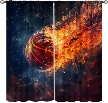 Баскетбол Тонкие шторы Спальня для мальчиков Детские Спортивные шторы на тему Игровые игры Крутое искусство Подростки Декор комнаты для мальчиков Гостиная Затемнение 100W130H(CM)40x51inGrommet Top