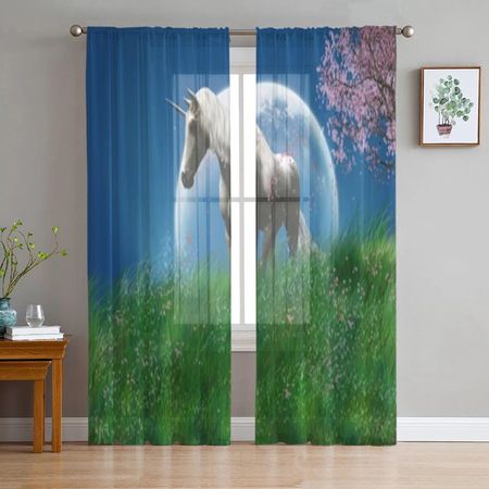 Главная » Все для дома Белый единорог в поле, прозрачные оконные шторы для гостиной, спальни, современная вуаль, тюлевые шторы, тканевые шторы для кухни 135W x 114H(cm) Просмотров 9 Yifulin
