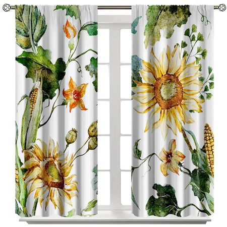Белый фон Желтый принт подсолнуха Высокозатемняющая штора Спальня Гостиная Окно Украшение дома 2 шт. Затемняющая Горячая распродажа W55 X H120cm X 2Grommet Top