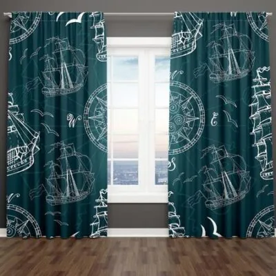 Белый мультфильм летний океан серии морской якорь синий оттенок спальня окно комплект штор для гостиной 2 шт бесплатная доставка 100W130H(CM)40x51inGrommet Top