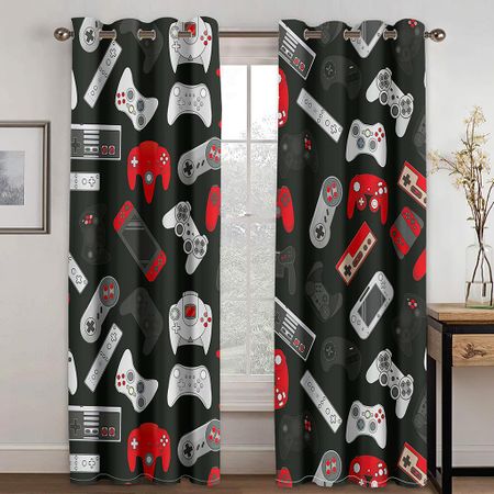 Бесплатная доставка Современная игра Геймер Мечтательный контроллер Детские Тонкие Оконные Шторы для Мальчика Ребенка Гостиная Спальня Декор 2Штуки W50 X H130(CM)X2Grommet Top