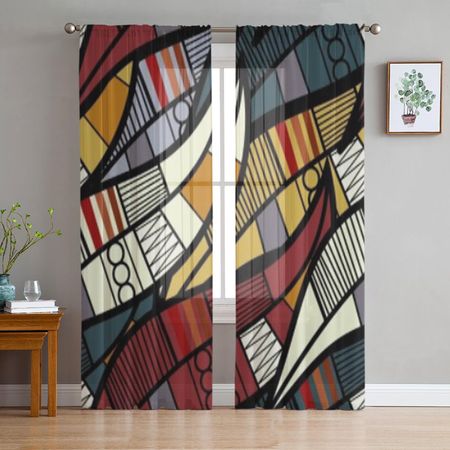 Бесшовная текстура с цветочными элементами, шифоновые прозрачные шторы для гостиной, спальни, украшение, вуаль, тюлевая занавеска 135W x 114H(cm)