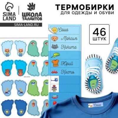 Набор бирок для одежды — это незаменимая вещь ребенку в детский сад и школу.Бирки помогут вам при поиске одежды или личных вещей вашего малыша в детском саду, школе или секции.Инструкция к наклейке:Подпиши и клей наклейки от защитной плёнки.Правильно приклей их в обувь.Инструкция к термобирке:Напишите имя ребёнка капиллярная ручкой. Подождите пока надпись высохнет.Вырежьте бирку ножницами.Выберите место для приклеивания бирки. Расположите её надписью вверх.Нагреть утюг до температуры 170 °C. Важно! Отключите пар!Положите лист бумаги на бирку и прижмите утюгом. Не двигая задержите его на 10-15 секунд.Подождите, пока бирка остынет. Проверьте степень её приклеивания. При необходимости повторите пункт 5.ВажноНе стирайте вещь минимум сутки. Термо бирка выдерживает стирку при температуре до 60 °C.