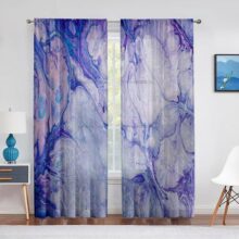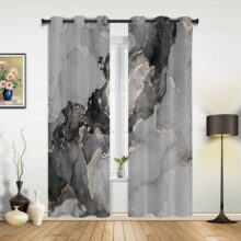 Black White Irregular Geometry Sheer Curtains for Living Room Decoration Tulle Voile Organza Window Curtains for Kitchen Bedroom W135 x H115cm x1Grommet Top