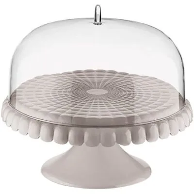 Блюдо для торта Guzzini Tiffany станет украшением праздничного стола или уютного чаепития на свежем воздухе. Оно идеально подойдёт для подачи тортов, а также выпечки и всевозможных сладостей. Крышка в форме купола защитит продукты от заветривания, пыли и насекомых, что особенно важно во время трапез в саду или на открытой веранде. Рельефная форма в сочетании с прозрачным материалом заставляют поверхность посуды сверкать и переливаться на свету, делая её центром притяжения взглядов. Особенности Коллекция «Tiffany» Коллекция «Tiffany» от итальянского бренда Guzzini — это воплощение роскоши, оригинальности и утончённого вкуса. Создавая эту линейку, дизайнеры Пио и Тито Тозо вдохновлялись идеей непреходящего стиля и безупречности Высококачественные материалы Блюдо изготовлено из высококачественного пластика, устойчивого к износу и повреждениям, крышка — из акрила. Материалы не содержат вредных примесей и бисфенола-А. Блюдо рекомендуется мыть вручную
