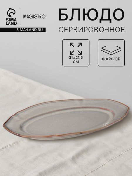 Это сервировочное блюдо станет стильным дополнением вашего стола. Его размеры 31×21,5 см и овальная форма делают его удобным для подачи различных блюд. Изготовленное из высококачественного фарфора, оно обладает гладкой текстурой и серым цветом, что придает ему современный и элегантный вид.Благодаря своим характеристикам, оно подходит для подачи как горячих, так и холодных блюд, что делает его универсальным для любого случая.Преимущества:Универсальный дизайн: гладкая текстура и серый цвет делают его подходящим для любого стиля кухни.Высокое качество: изготовлено из фарфора, что обеспечивает долговечность и прочность.Удобство использования: подходит для мытья в посудомоечной машине и использования в микроволновке.Идеальный размер: 31×21,5×2.8 см — оптимальный размер для сервировки различных блюд.Практичность: подходит для подачи горячих и холодных блюд.Это блюдо — отличный выбор для тех, кто ценит качество и стиль. Оно станет вашим помощником в сервировке стола и подарит эстетическое удовольствие при каждом использовании.