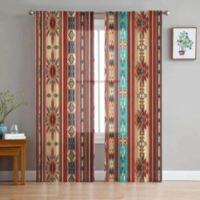 Богемное искусство Геометрическая графика Прозрачные тюльные шторы для окон для гостиной, спальни, кухни, вуалетные шторы для украшения дома W135 x H114cm