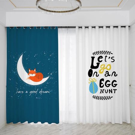 Большой Белый Медведь Звезда Мультяшный Детский Мальчик Комната Штора Мальчик Эркер Спальня Гостиная Тонкая Штора Новый Модель Узор W55 X H120cm X 2Grommet Top