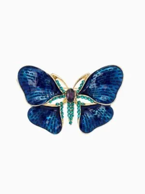 Присоединитесь к миру фауны и флоры! Брошь с изображением голубой бабочки продемонстрирует вашу страсть к красивым вещам и способность оценить тонкие моменты окружающей среды. Нежные полутона синего цвета создают мягкую и приятную картинку, подчеркнутую деликатным добавлением золотых линий и точек.Качественная работа: Металлическая основа надежно удерживает краску и декоративные элементы, обеспечивая длительное сохранение первоначального внешнего вида.Легкость и мобильность: Оптимизированный размер броши упрощает подбор подходящей одежды и гарантирует удобное размещение на воротнике, сумке или кармане.Дополнительные детали: Используемые стеклянные стразы играют важную роль в общей картине, передавая отражение солнечных лучей и играя дополнительными оттенками.Дарите прекрасное: Этот маленький аксессуар непременно преобразит ваш образ, сделав его привлекательным и интересным, независимо от обстоятельств и обстановки.