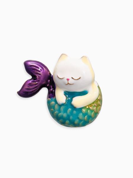 Чудесная брошь в виде кошечки-русалки создана специально для тех, кто любит необычные аксессуары и хочет выделиться среди серой массы обыденности. Яркая и игривая, она мгновенно привлечёт внимание окружающих своим разноцветием и необычной тематикой животных. Маленькая, всего 3,2 см, она удобно располагается на груди или воротнике, превращая простую одежду в предмет восхищения.Особенности изделия:Основа сделана из металлического материала, устойчивого к повреждениям и царапинам.Поверхность украшена цветной эмалью, позволяющей передать мельчайшие детали образа кошечки-русалки.Фурнитура позолоченного оттенка усиливает общее восприятие и гармонирует с цветовой гаммой эмали.Маленький шедевр:Благодаря броши «кошечка-русалка» вы сможете создать интересный и запоминающийся образ. Такой необычный аксессуар непременно поднимет настроение и добавит веселья в будничную жизнь. Если хотите внести капельку волшебства в свой гардероб, обратите внимание именно на неё.
