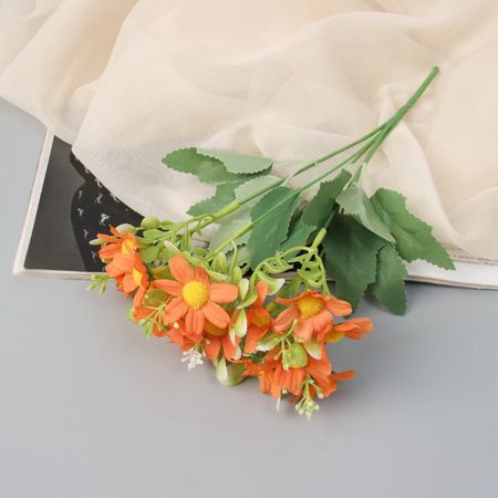 Солнечное настроение в вашем интерьере круглый год! Искусственные ромашки «Пиретрум» — это нежные и очень натуралистичные цветы для декора. Композиция сохраняет идеальный вид без ухода, не выгорает и не боится влаги.Приятные оттенки: Букеты ромашек в солнечной гамме — белые, желтые и розовые соцветия. Любое из этих сочетаний создает жизнерадостный акцент в комнате, кухне или офисе.Натуральная текстура: Лепестки и листья выполнены из качественного текстиля. Они повторяют структуру живого цветка, поэтому ромашки приятно рассмотреть вблизи.Устойчивые стебли: Цветы надежно закреплены в пластиковых стеблях. Букет не согнется под собственным весом и сохранит заданную форму в высокой вазе.Готовое решение: Вам не нужно составлять композицию — веточки уже образуют гармоничный букет высотой 29 см. Его можно сразу поставить в вазу или использовать для творчества.Сфера применения: Эти ромашки подходят для украшения обеденного стола, декора полок и создания постоянных композиций в эко-стиле. Они выручат, когда под рукой нет свежих цветов. Подарите себе кусочек лета, не требующий хлопот!