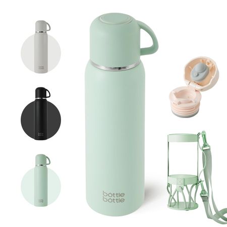 БУТЫЛКА БУТЫЛКА Бутылка для воды 1 литр Бутылка-чашка с вакуумной изоляцией из нержавеющей стали Кружка Бутылка Чашка для питья Крышка для питья в комплекте зелёный